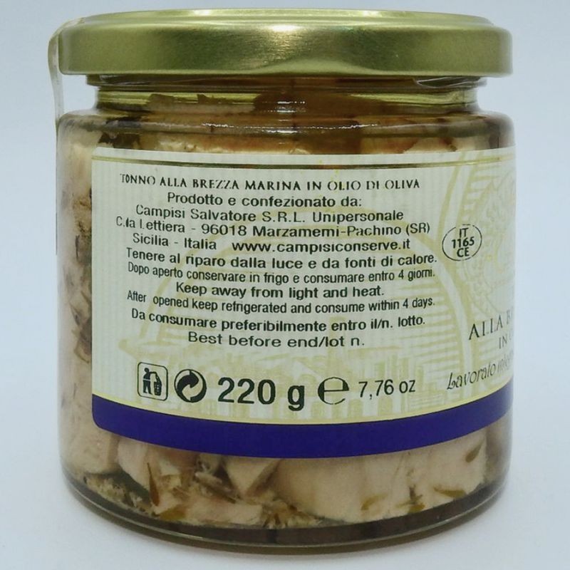 Tonno alla brezza marina in Olio d’oliva è un prodotto di primissima qualità ed è un secondo piatto ideale, soprattutto se accompagnato da un’insalata di ortaggi di stagione.